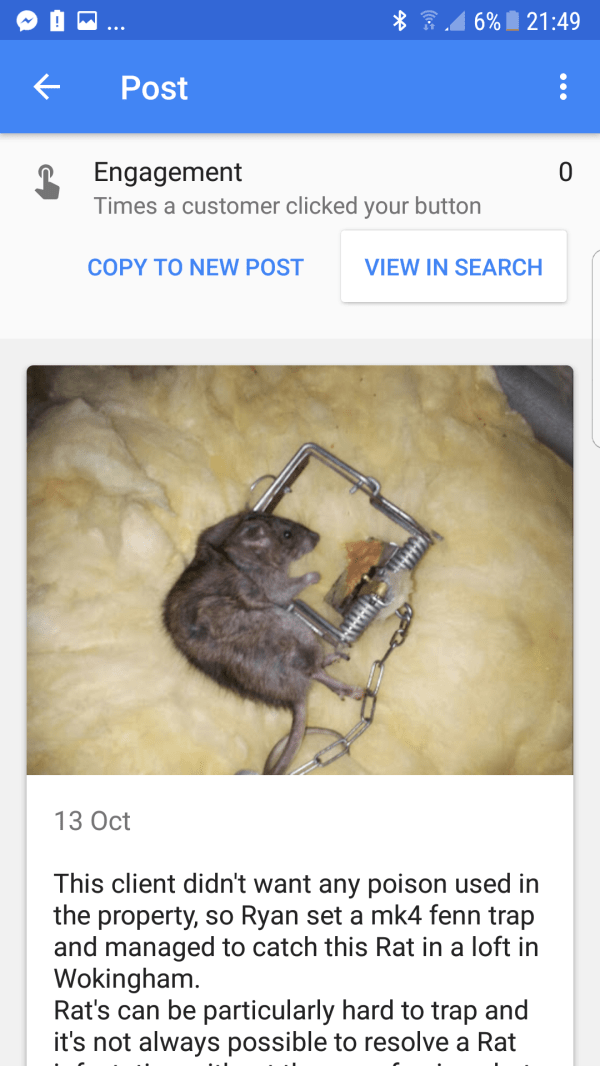 Our pest control technician caught this adult Brown Rat in a trap inside a domestic loft. The client had been hearing something moving around the loft, our pest control technician found rat dropping in the loft and in the drain. He installed a Rat Wall Drain Valve and set a trap in the loft. Another... Continue Reading →