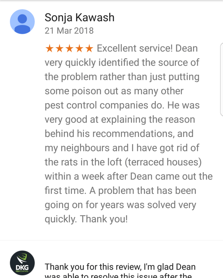 Within 7 days Dean had solved the rat issue and found the source of the problem to be the drains once again!