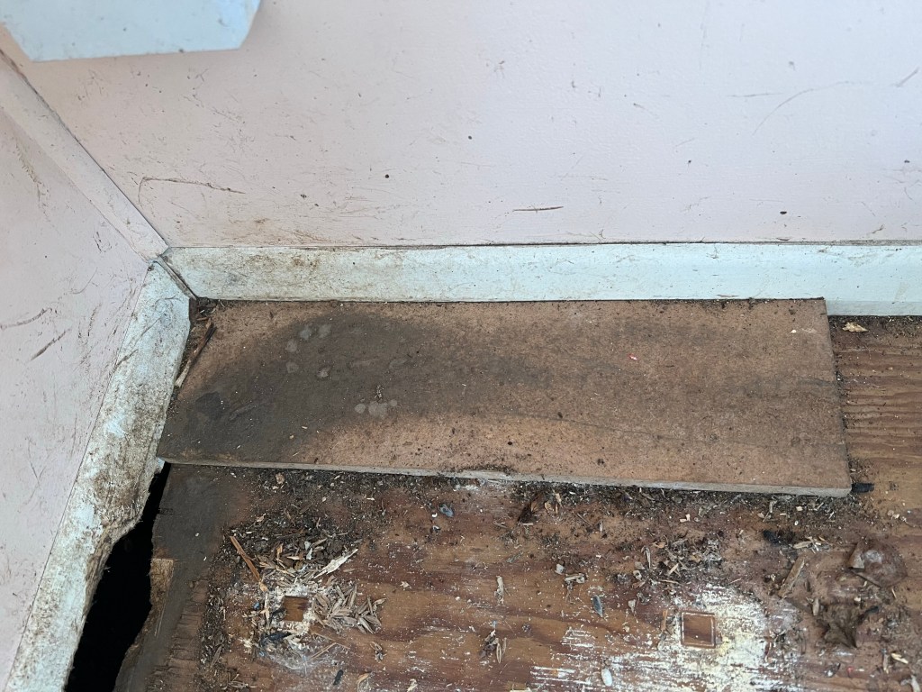The rats have been controlled, all burrows filled, the floor has been covered with some new ply wood and we have run wire all around the edges where the rats had been chewing their way into the room.